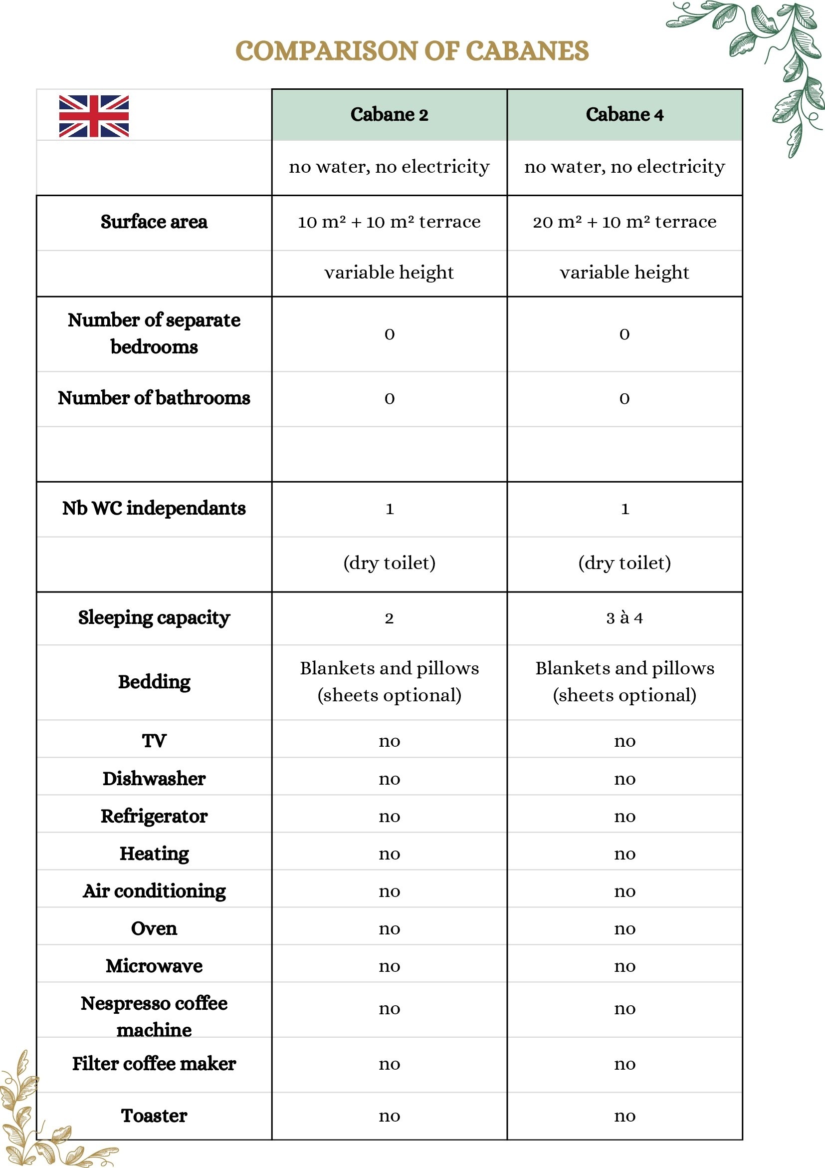Die Hütten haben weder Wasser- noch Stromanschluss und sind je nach Modell unterschiedlich hoch. Zögern Sie nicht, sich an die Rezeption zu wenden, um die ungewöhnliche Unterkunft zu finden, die am besten zu Ihnen passt.