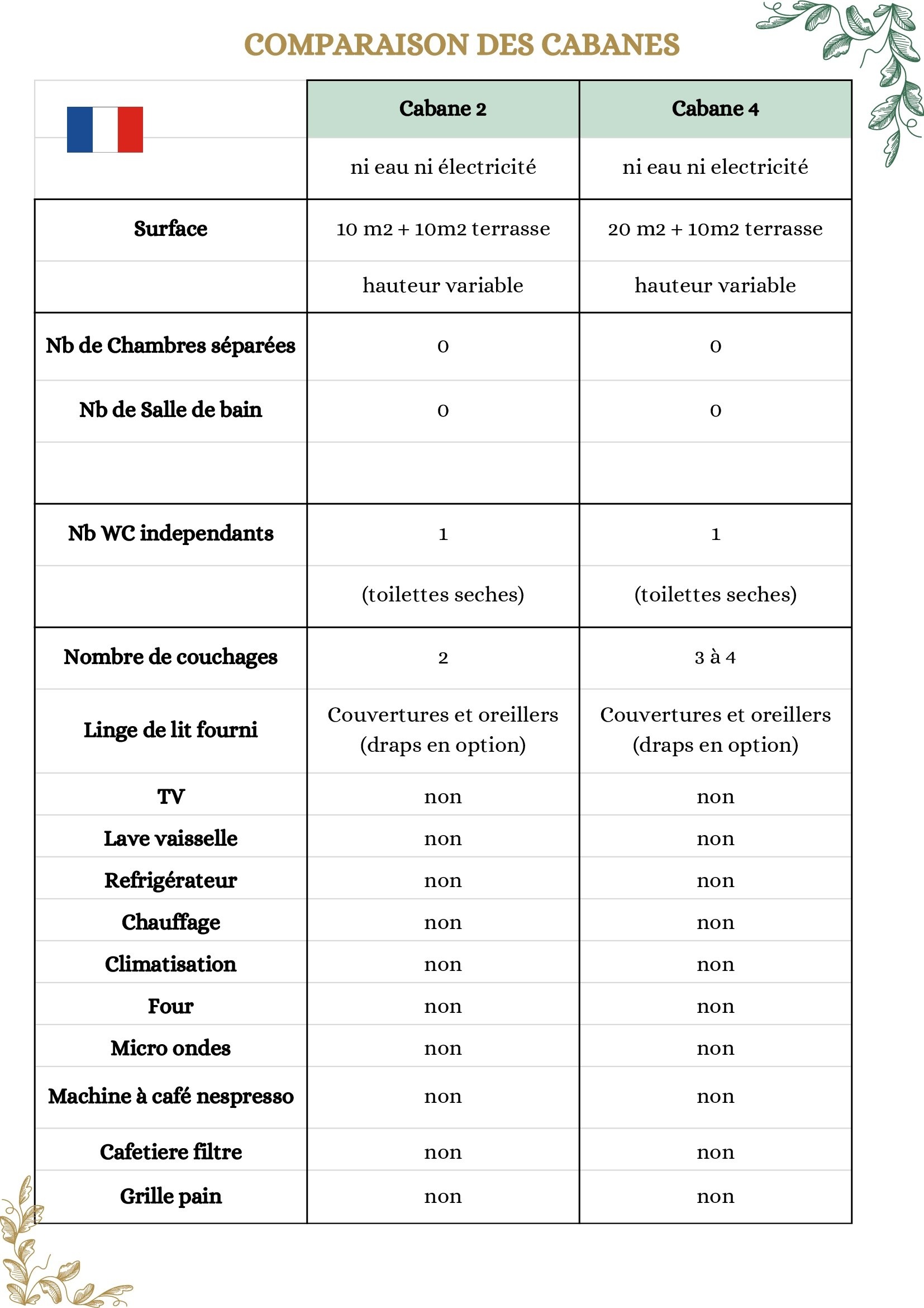 Les cabanes accueillent de 2 à 4 personnes.