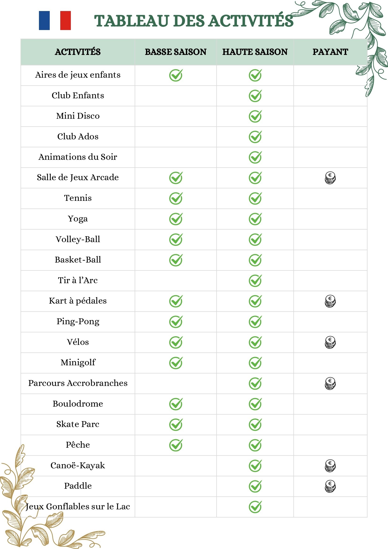De juin à août, on vous propose un large choix d’animations et d’activités 6 jours sur 7. Venez vous divertir à votre rythme, que ce soit en famille ou entre amis, et profitez des nombreuses infrastructures qui feront de votre séjour un moment inoubliable.