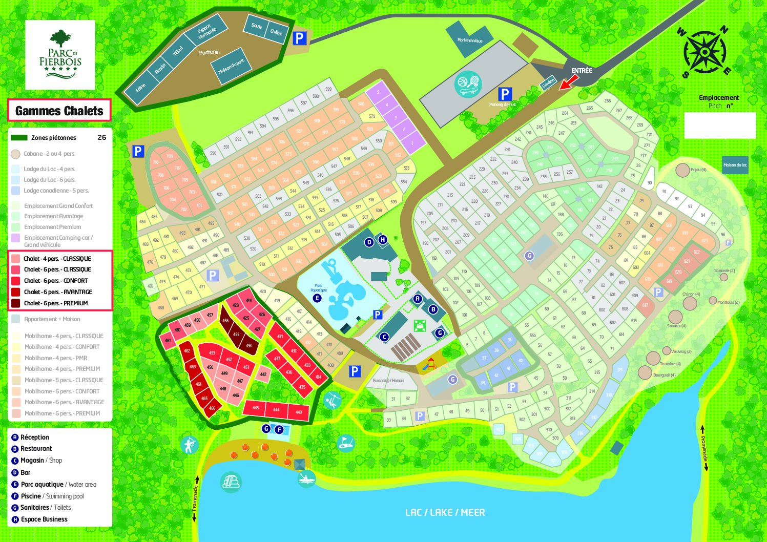 Bénéficiant d’une surface un peu plus grande et sont situés dans la Grande Fûtaie, une zone entièrement piétonne, ils offrent des niveaux de confort similaires à ceux des mobil-homes.